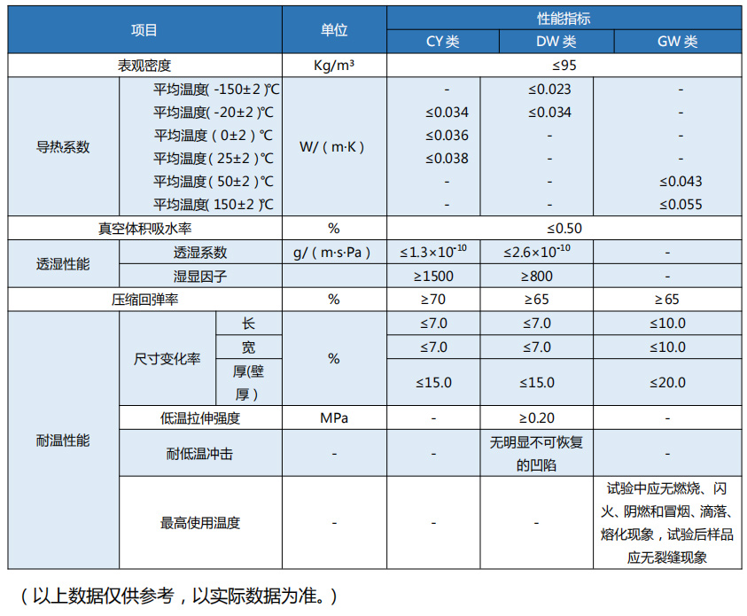 密度:40*80kg/m3;導熱系數:0℃時≤0.03w/m.k ;使用溫度:-40℃至 105℃